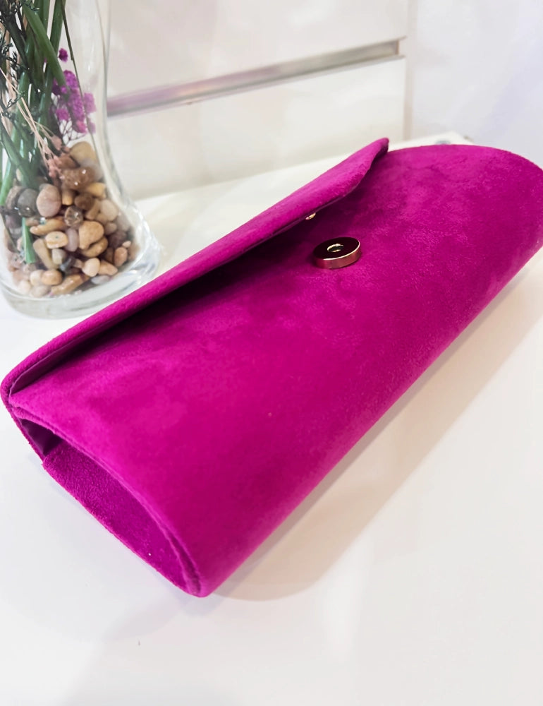 Añade un toque de sofisticación a tu look de evento con nuestro bolso de mano tipo sobre. Confeccionado en antelina suave de color buganvilla, este accesorio es el equilibrio perfecto entre tendencia y sobriedad. Su diseño minimalista y silueta limpia lo convierten en el complemento más versátil para cualquier invitada de boda, bautizo o comunión.